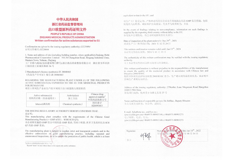 浙江海昌药业股份有限公司(简称“海昌药业”)原料药(碘海醇)合成三车间、精烘包车间、生产线1通过GMP符合性检查。