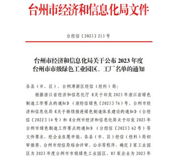 海昌药业荣获2023年度台州市市级绿色工厂称号
